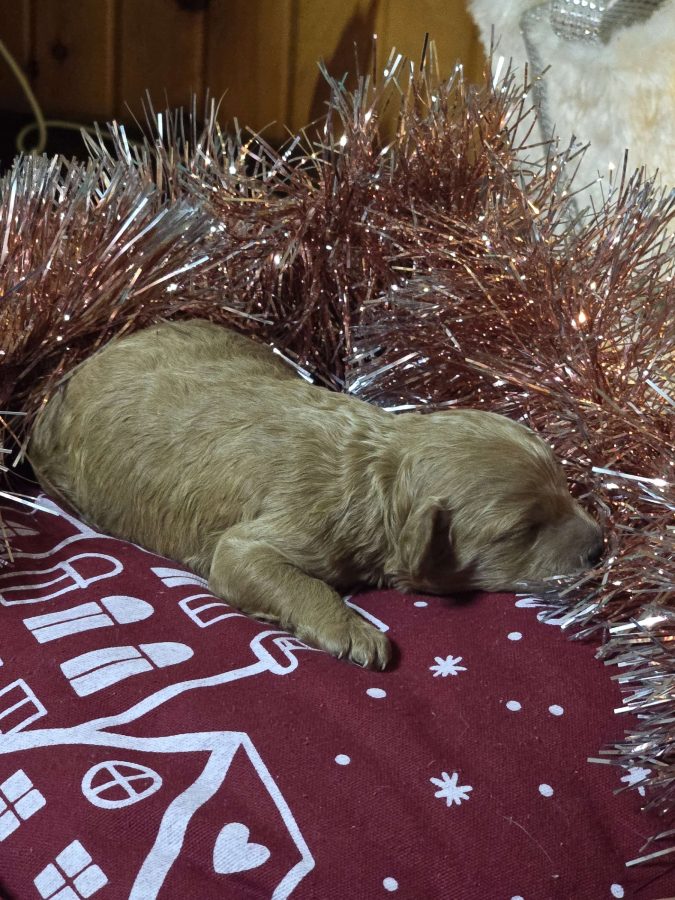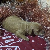 Dancer Breed: Goldendoodle Date of Birth: 11/12 Generation: multigeneration Sex: Female Color: red Expected Size: under 25 Coat: curly Price: $1799 Ready to Go Home Date: 1/7 Parents: nola and stitch PA License: #10867