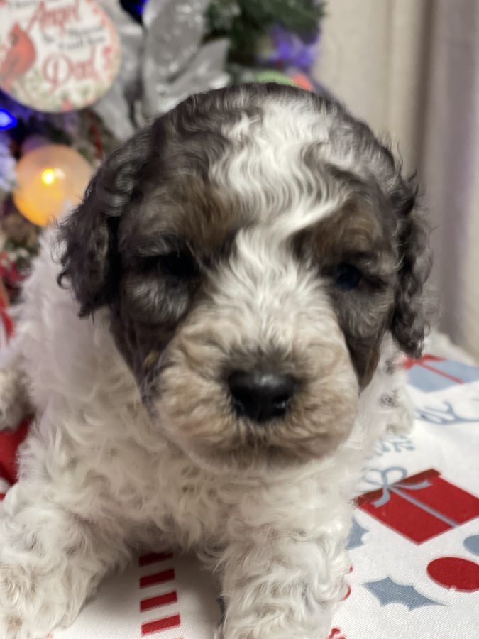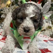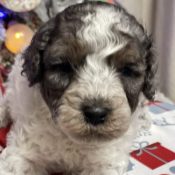 snickerdoodle Breed: Goldendoodle Generation: Multigenerational Sex: Male Color: white with merle Expected Size: under 20 Coat: curly Price: $1899 Ready to Go Home Date: 12/24 PA License: #10867